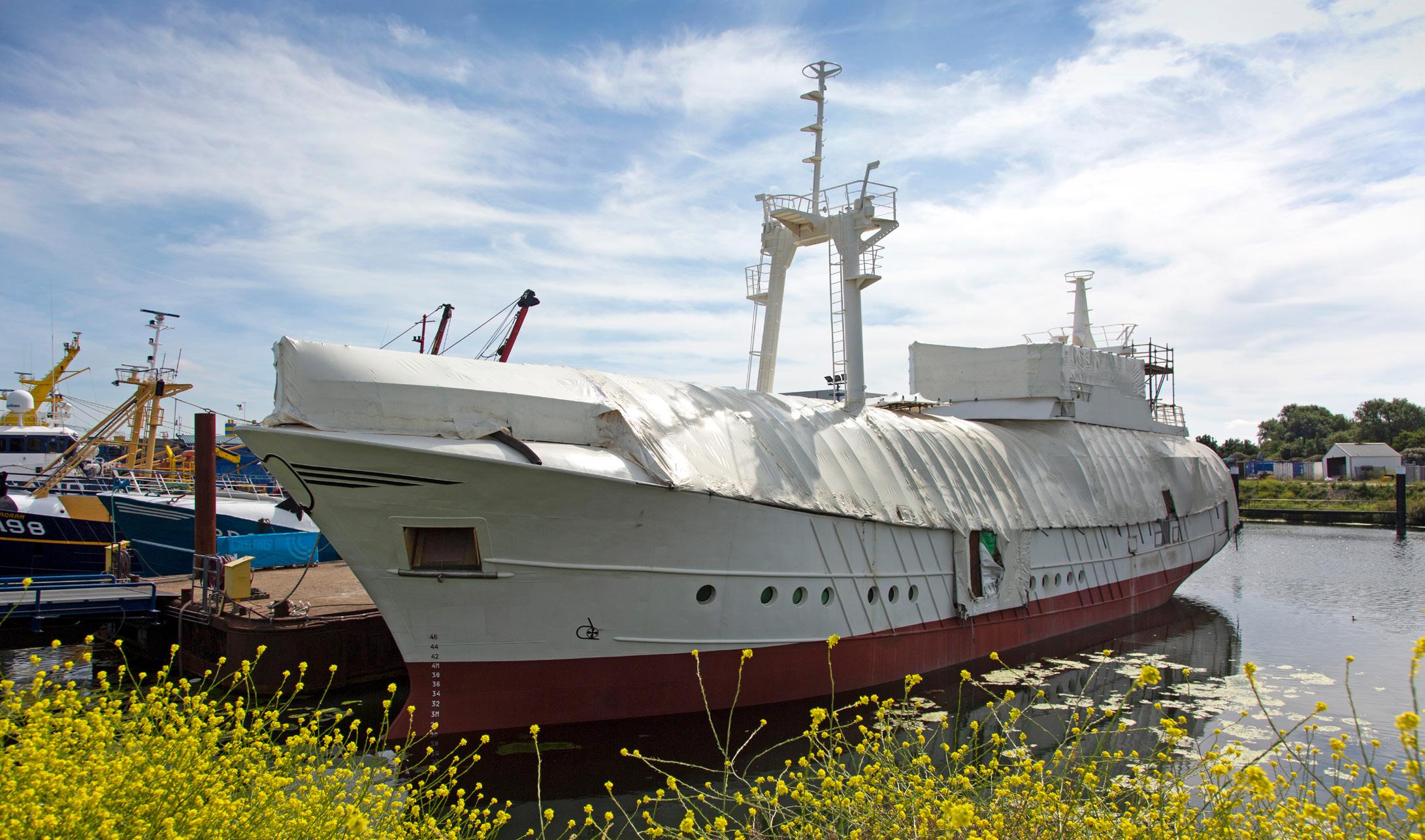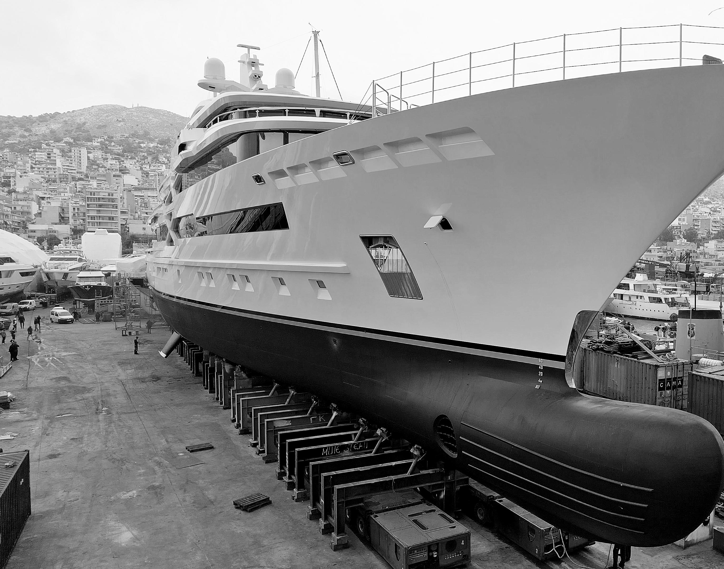 Fourteen years after building started in Chile, 85-metre Project X is completed in Greece.