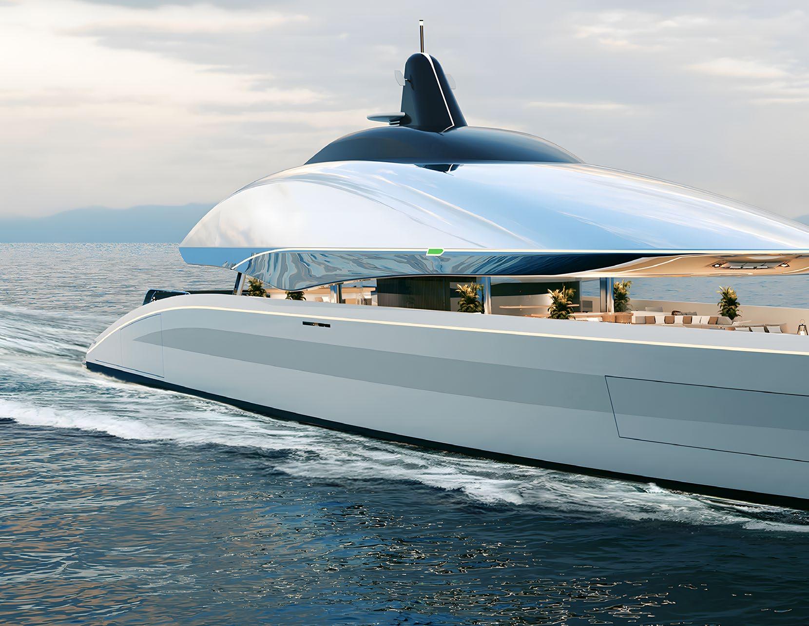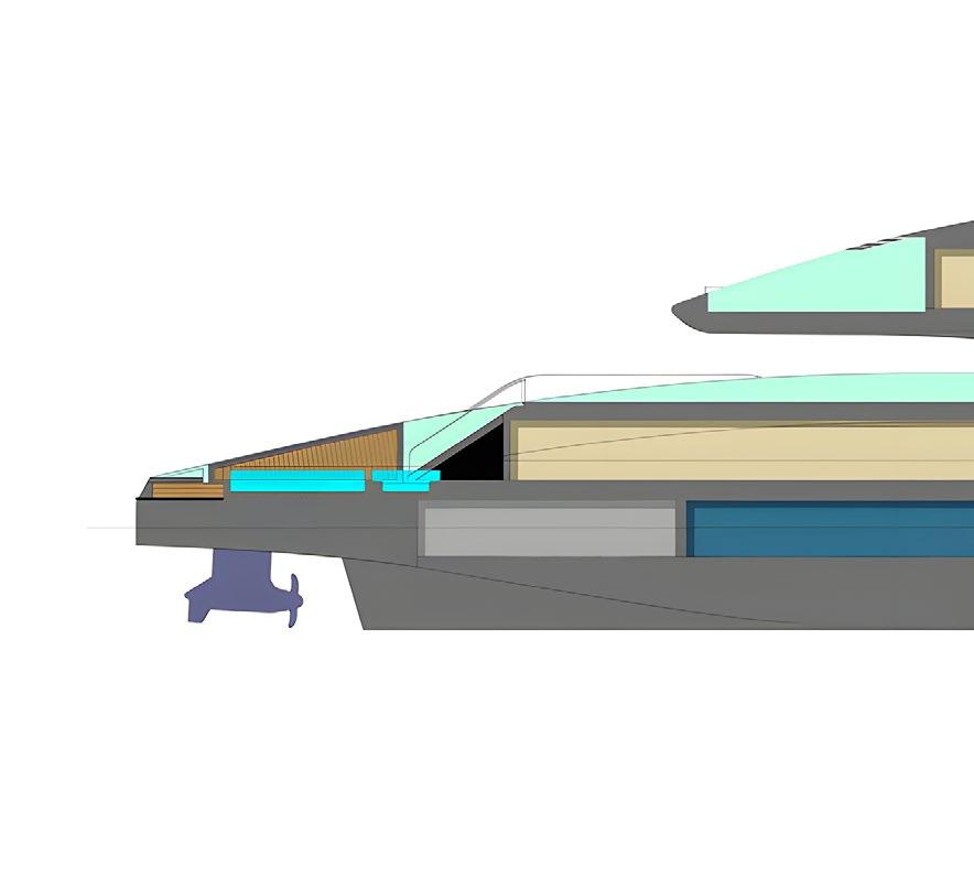 Luiz de Basto’s 92-metre Project Med takes inspiration from an open architectural concept proposed by Lateral Naval Architects.
