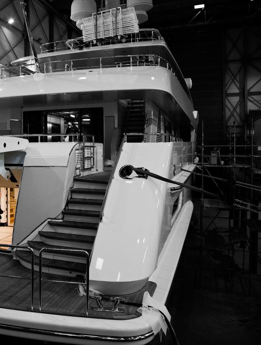 Lastly, we see that large yachts are more-andmore often raising questions regarding the maintenance of their hull doors. In a worst case scenario, we have seen corrosion issues leading to missed charter income. Yachts (up to 12 pax) can have their door built whilst the yacht is in service, and during a docking have the door replaced for a maintenance free composite version. An added benefit is the lightweight design, which will also reduce stress on the mechanical and operating components.