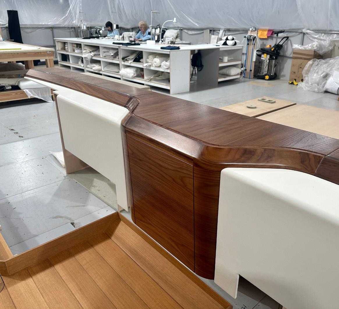 The extended interior meant a potential headache ensuring seamless integration with the original style and finish: “A lot of the existing interior used Alpi veneers, so we got in touch with them to match what was on board,” says van den Berg. “Then we had to try a lot of different lacquers to get the right finish, and then match the new interior to the old, much of which has had 12 a couple of years in the sun. We found a happy medium that matches 99 percent of that old interior!”