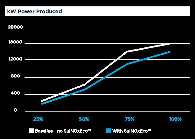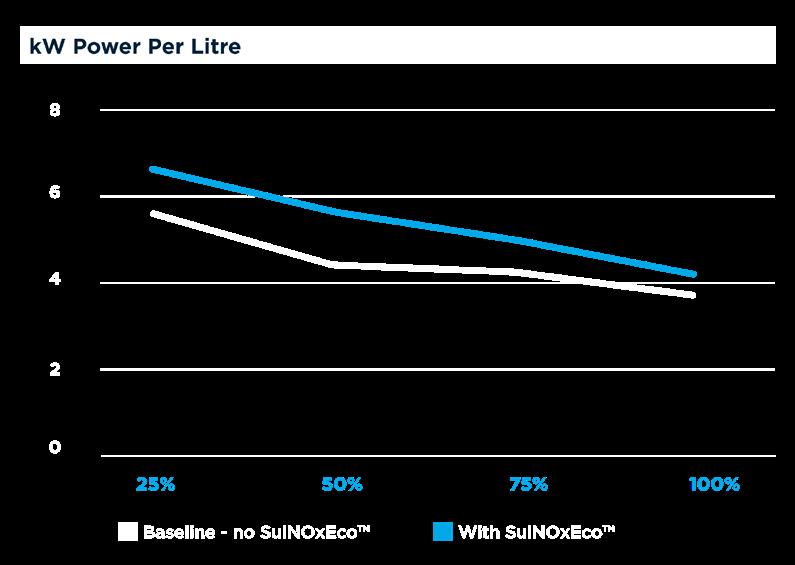 In a separate trial of a CAT 18-cylinder engine on a large Bureau Veritas-classed commercial vessel, data was collected from bollard pull tests to establish baseline readings in terms of power and torque produced per litre of fuel consumed under normal operating conditions, with and without the addition of SulNOxEco Fuel Conditioner. The results demonstrated that the additive provides significantly better engine running with lower exhaust, oil and coolant temperatures along with more power and torque output.