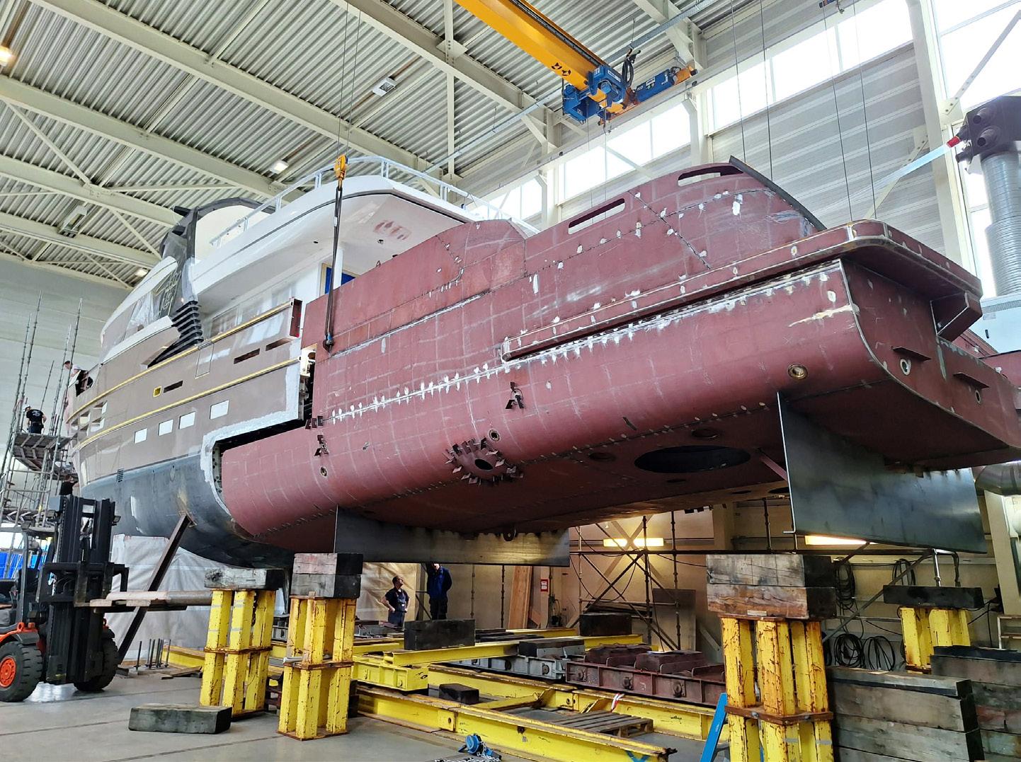 That class-compliant standard also leached into original parts of the build with strengthening of the existing midships section for the crane and jet skis on the upper deck, strengthening of the central girder in the engine room, and work on the fuel tanks.
