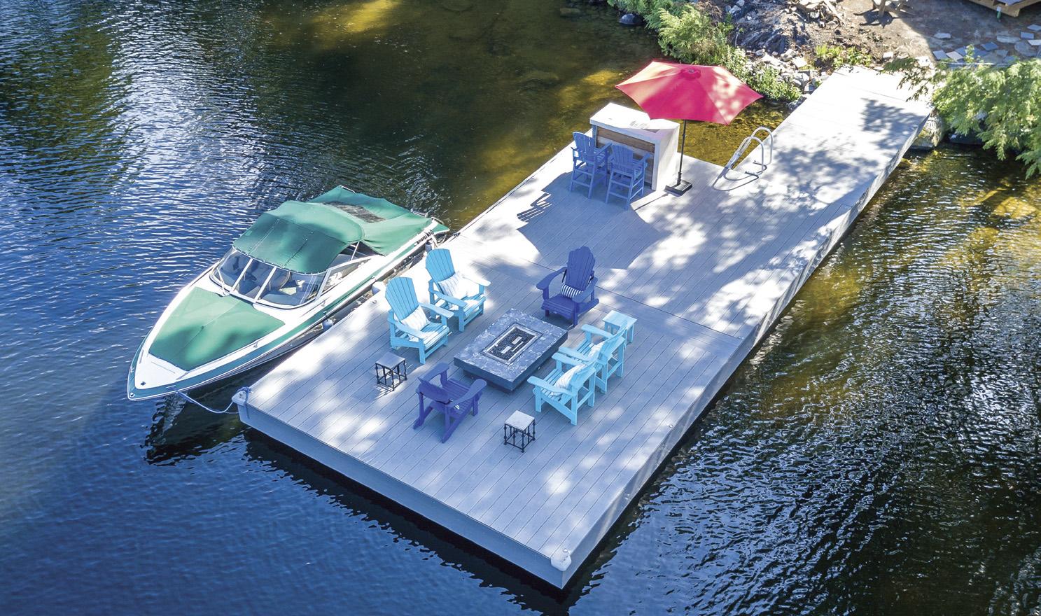 For the transition to shore, Roll-In Dock ramps connect with Golden’s extruded quick hinge bracket and a stainless steel ball pin and a Para-Track system allows for the simple bolt-on installation of accessories anywhere along the dock. These include cast aluminium cleats, vertical and horizontal urethane bumpers, corner bumpers, inside corner dock wedges, barbecue mounts and a dock ladder.
