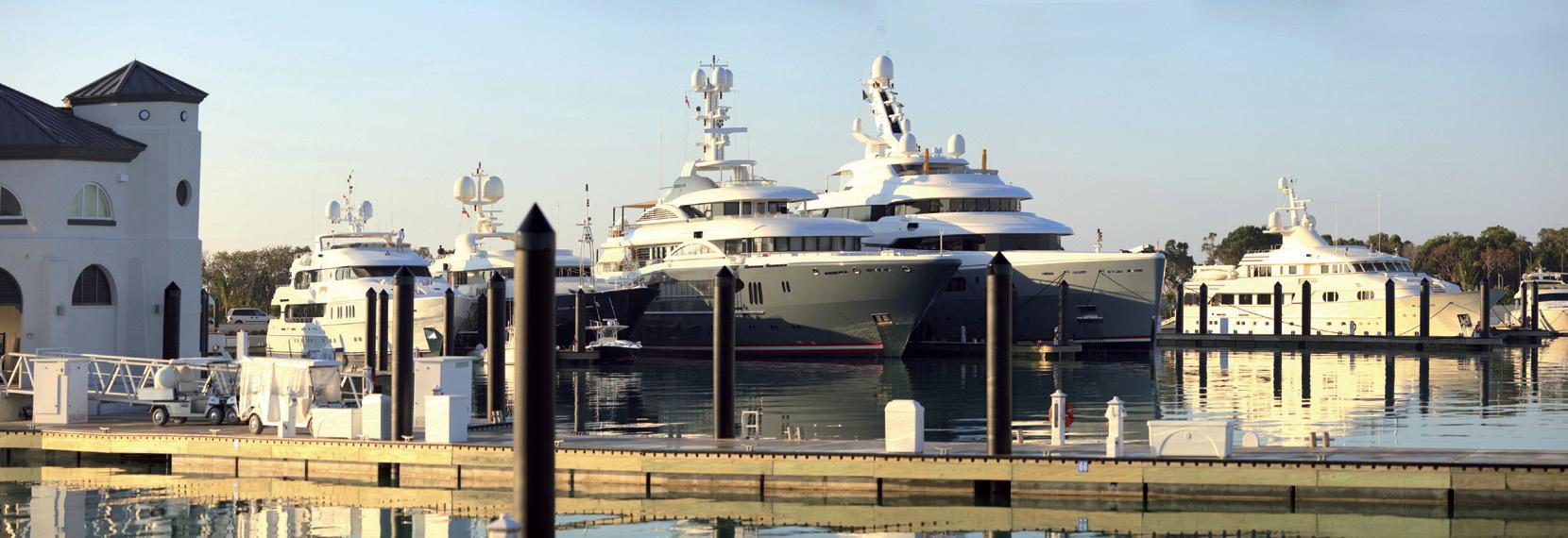 UK-based marina consultants Marina Projects was appointed to advise on the master plan design, berth mix and technical provisions of the marina, and the structural design of the concrete pontoon system was provided by Atkins. This has been carefully engineered to withstand extreme loading forces exerted by superyachts and attenuate strong waves. The largest pontoons, at 5m (16ft) width, allow two-way passage for buggies – the main transport mode within the marina.