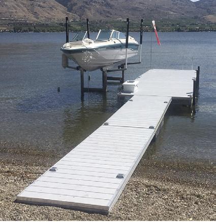The dock is packaged in kit form and can be bolted together using common household tools. Custom configurations are available to fit virtually any requirements.