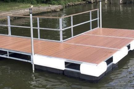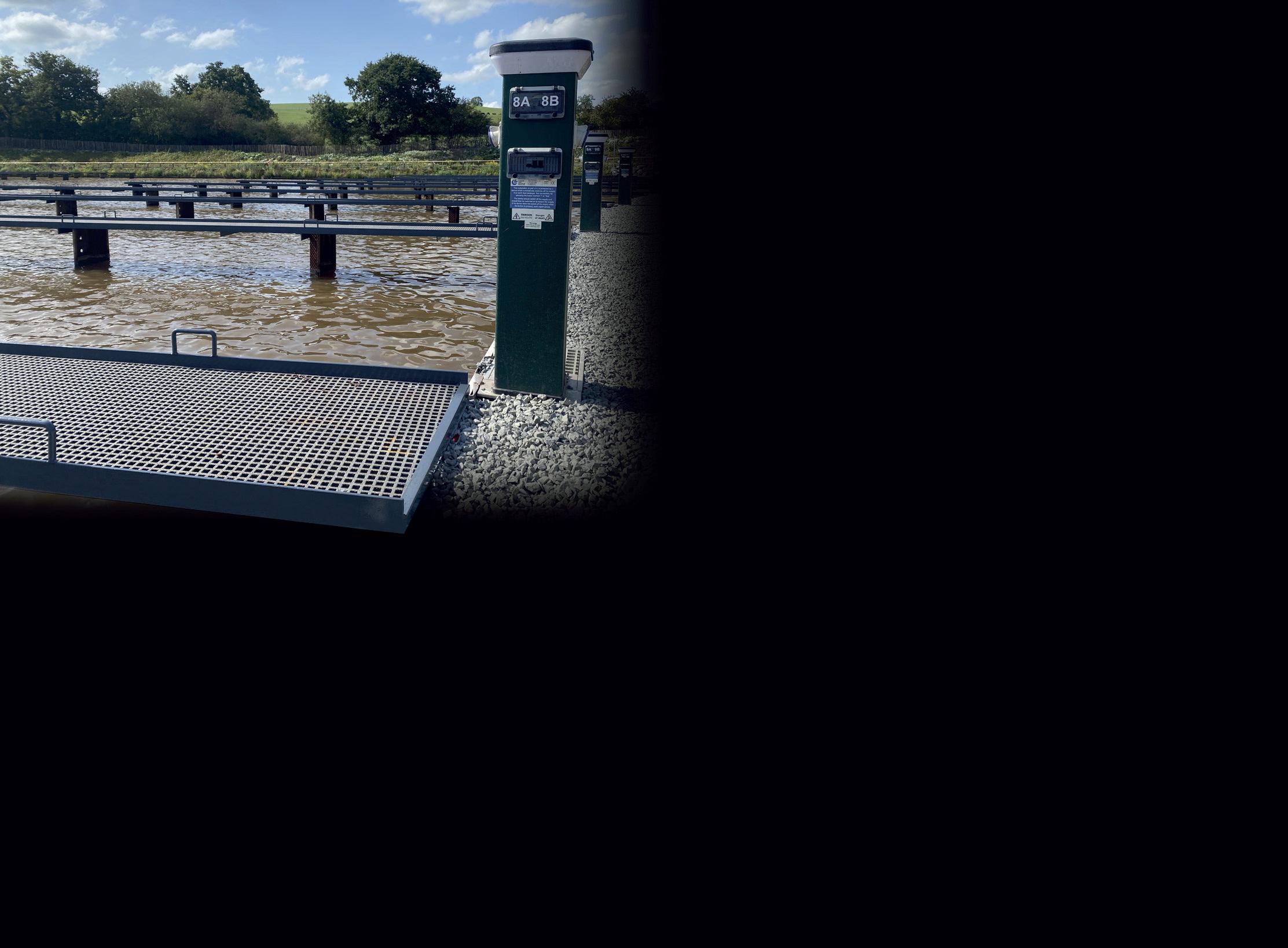 Pontoons are connected using Golden’s extruded aluminium whalers with the ability to fit and move cleats, pile guides and finger piers. www.goldenmarinesystems.com