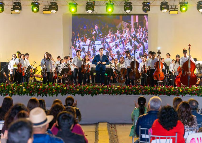 El evento inició con la participación de la Orquesta y Coro Juvenil de Sinfonía por el Perú Núcleo Arequipa, un elenco conformado por 120 niños y adolescentes, quienes abrieron la noche con un variado repertorio de 11 canciones instrumentales de Vivaldi, Mozart, Giuseppe Verdi, entre otros. Los espectadores tuvieron una noche llena de alegrías y sentimientos encontrados, más aún cuando la delegación interpretó la pieza “Ilo, tesoro del Perú” de Eduardo Tasayco, canción dedicada al querido puerto de Ilo. Al finalizar su presentación, los asistentes no pudieron evitar ponerse de pie y aplaudir el gran talento de los jóvenes y niños de Sinfonía por el Perú, que gracias a