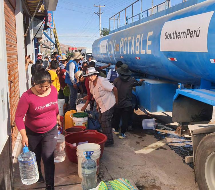 La empresa se sumó a las acciones de contingencia que emprendieron autoridades regionales y trabajó en dos frentes. El primero facilitando cisternas de gran capacidad para distribuir agua a la población en distintos puntos de Moquegua.