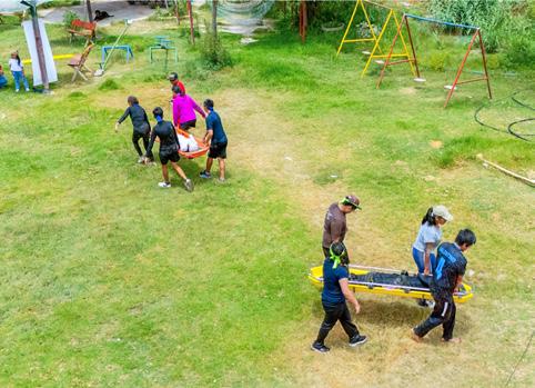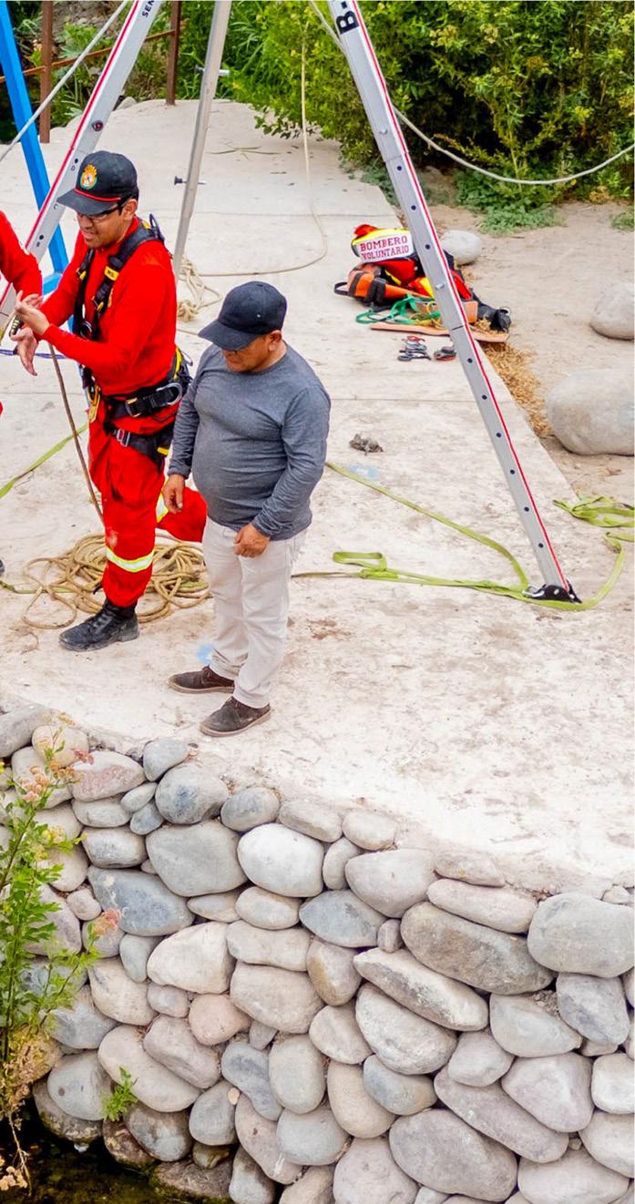 Los participantes vivieron una jornada de aprendizaje práctico que simuló el entrenamiento de los bomberos rescatistas. A través de circuitos de preparación física pusieron a prueba su resistencia, coordinación y concentración, mientras aprendían técnicas básicas de evacuación de víctimas y prácticas con cuerdas para actuar ante emergencias como huaicos, deslizamientos o rescates en quebradas.