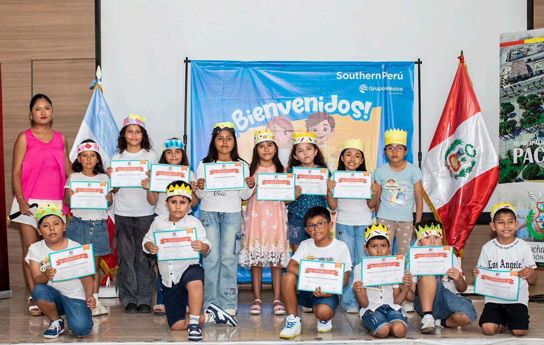 Con entusiasmo, canciones y mucha participación, 68 niños de Ilo formaron parte del curso de inglés “Mis Vacas Divertidas”, una iniciativa impulsada por Southern Perú en trabajo conjunto con la Municipalidad de Pacocha y la participación de Villa Kids y el Centro Cultural Peruano Norteamericano. El programa permitió que los pequeños se acerquen al idioma de una manera dinámica, combinando aprendizaje, arte y juego.