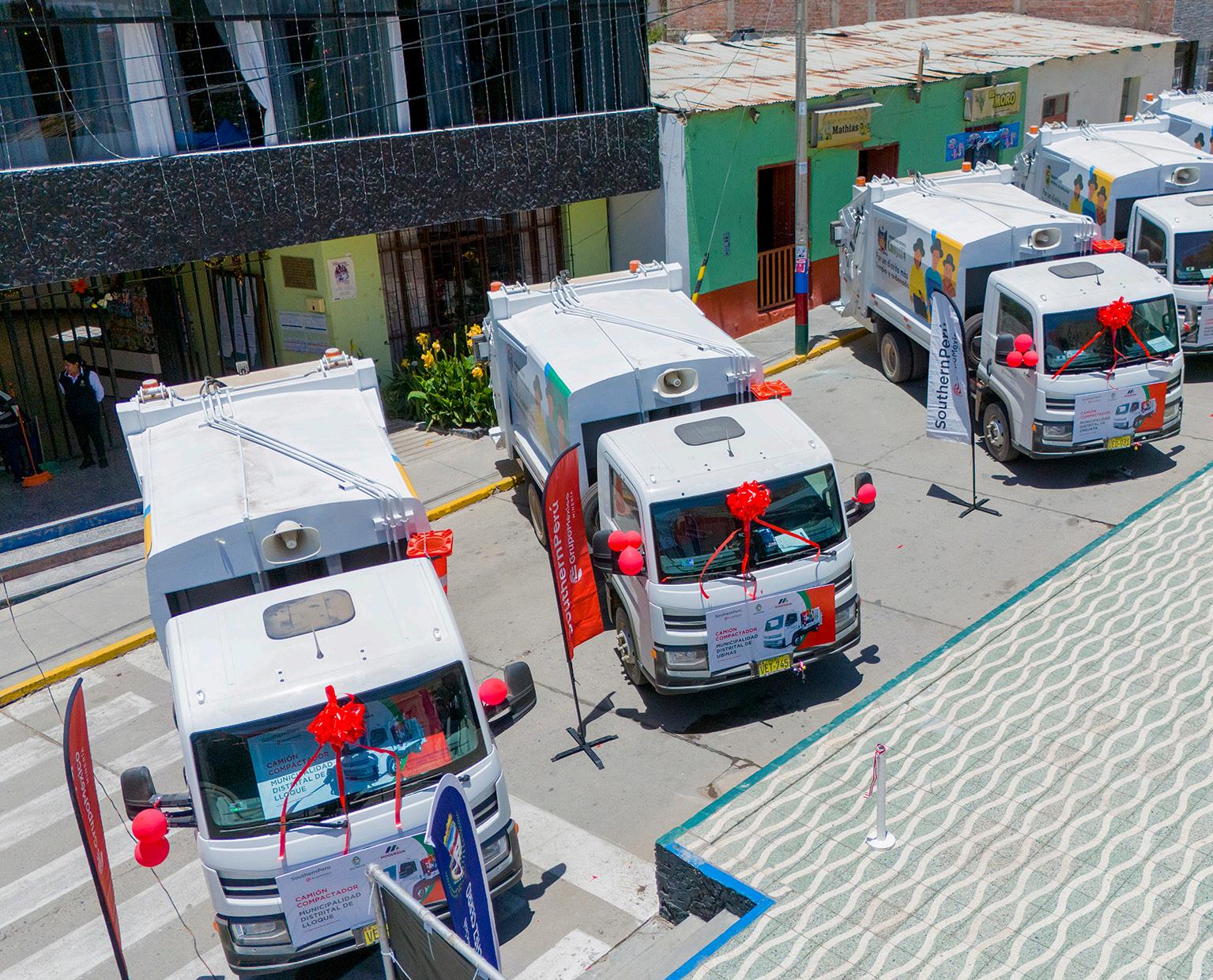Southern Perú llegó hasta la plaza de Omate para entregar seis camiones compactadores de última generación a las municipalidades distritales de la provincia de General Sánchez Cerro, y con ello fortalecer la gestión de residuos sólidos y contribuir a mejorar la calidad de vida de las familias de la provincia.