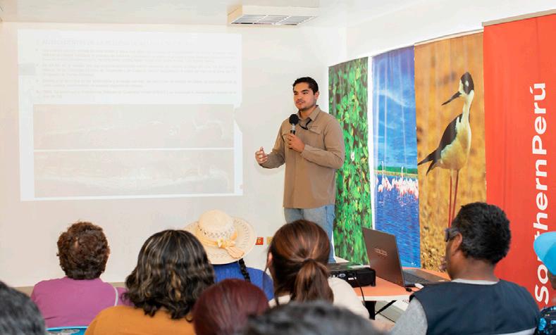 Durante el taller, especialistas de Southern Perú expusieron sobre los antecedentes y la formación de los Humedales de Ite, mientras que AIECO abordó la importancia de estos como refugio de vida silvestre. Por su parte, SERFOR explicó su rol y competencias en la gestión, control y protección de la fauna silvestre asociada a estos ecosistemas.
