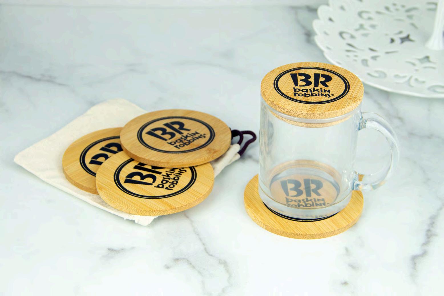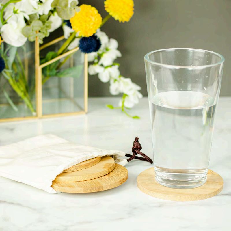 Set Of 4 Bamboo Coasters with Canvas Pouch