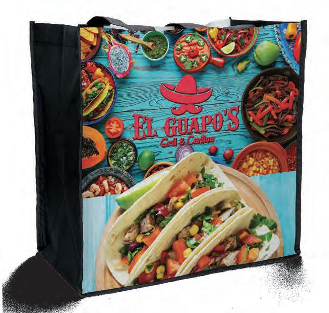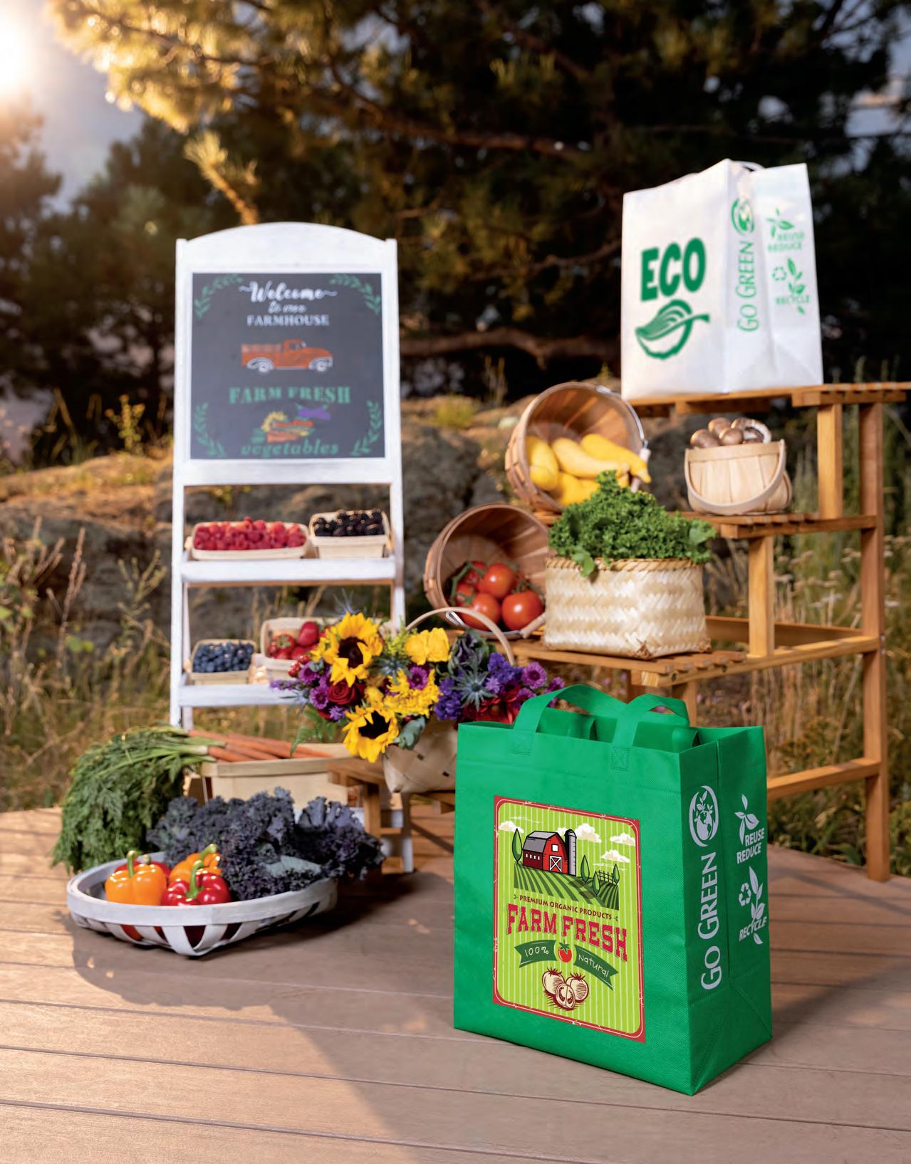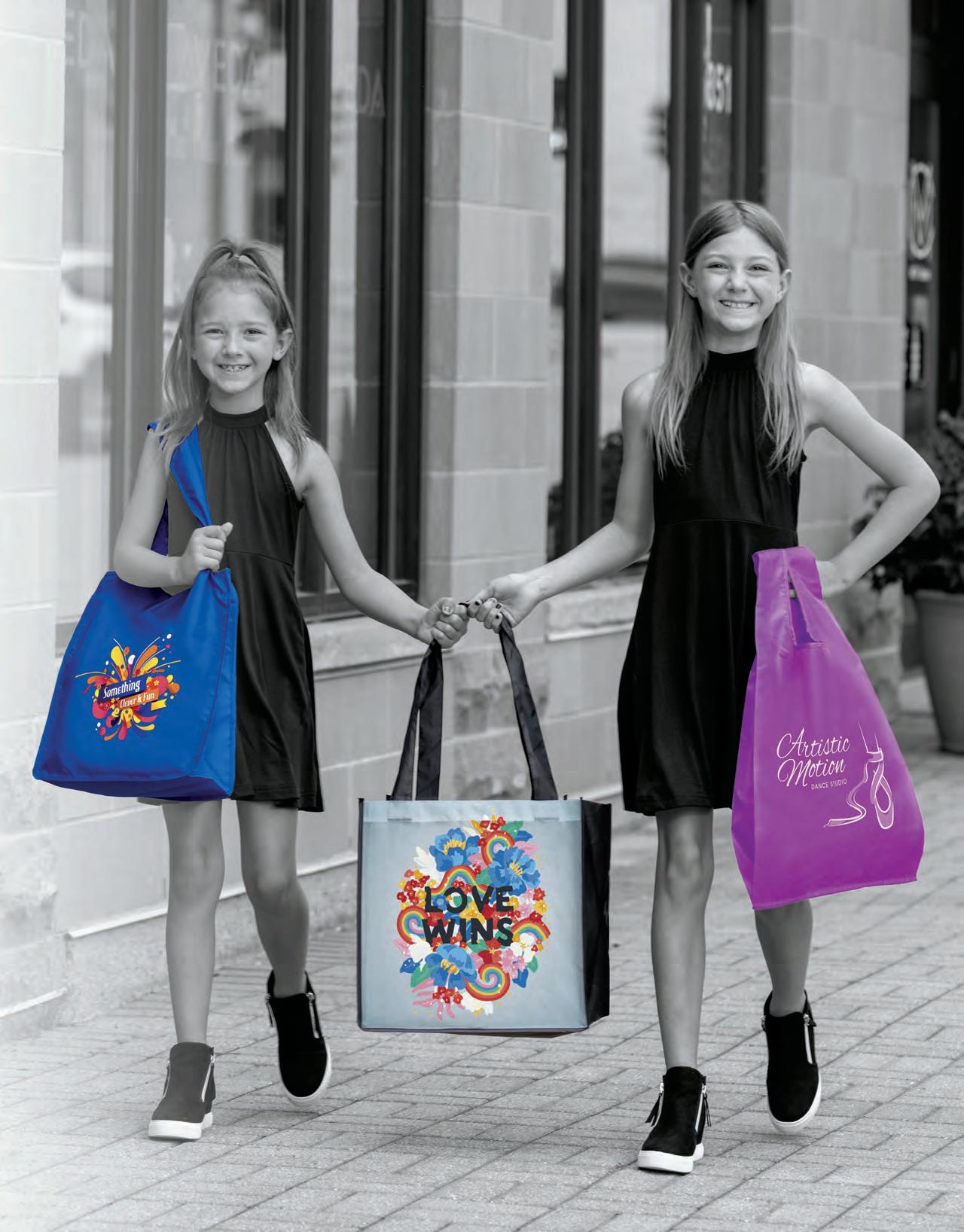 ALL USA-MADE .................................... 14-15 SHOW STOPPER / ON TREND 16-17 TOTAL BRANDING - Food Service .................... 68-69 PLAN FOR THE HOLIDAYS 140-141 ORDERING INFORMATION 206-207 ART SPECIFICATIONS ............................. 208-220 • BRILLIANCE 217 • CHROMATIC ..................................... 220 • COLORVISTA 212 • DIGITAL FULL COLOR 215 • DIRECT PRINT ................................... 214 • DYNAMIC COLOR 219 • FLEXO INK PRINT ................................. 209 • FOIL PRINT 210 • MARQUEE 218 • SCREEN PRINT ................................... 211 • SPARKLE 216 • SUBLIMATION ................................... 213 ADDITIONAL SERVICES ............................... 221 BAG INDEX 222-223 PRODUCT SAFETY/RECYCLING ......... 224-Inside Back Cover CONTENTS 2024 New Products .......................... 1-13 Cotton/Jute Bags 2-3, 20-29 Polyester Bags 3 0-39 USA-Made Non-Woven Bags 42-43 Non-Woven Bags .............. 12-13, 40-81, 146-147 Packaging .................................. 82-95 Plastic Bags ................................ 9 6-145 Halloween Bags ........................... 142-147 Paper Bags ............................... 14 8-185 Design Centre ....................... 18 -19, 186-205