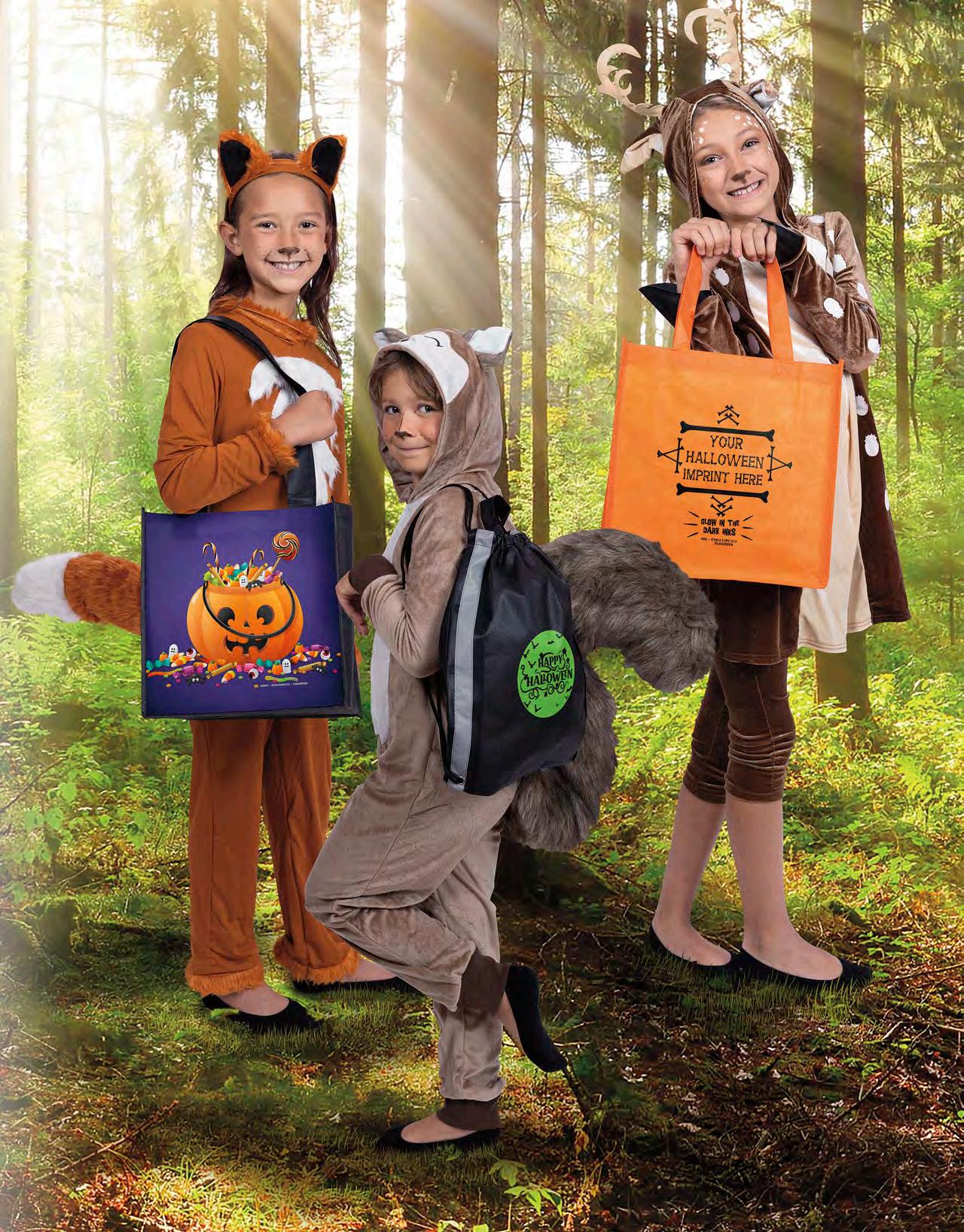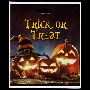 DIGITAL FULL-COLOR DIE CUT HANDLE BAGS — Plastic 142-143 NON-WOVEN BAGS — Non-Woven 146-147 ORANGE HAPPY HALLOWEEN — Plastic Die Cut Handle Bag 144-145 ORANGE TRICK OR TREAT — Plastic Die Cut Handle Bag ..... 144-145 PUMPKIN ORANGE FROSTED SHOPPER — Plastic 144-145 SILVER REFLECTIVE GHOST — Plastic Die Cut Handle Bag 144-145 SILVER REFLECTIVE PUMPKIN — Plastic Die Cut Handle Bag 144-145