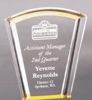 GOLD ACRYLIC AWARDS All Reflection Acrylic Awards are 3/4” thick and include the black acrylic base with gold mirror as shown. Add 7/8” to acrylic size for complete height with base. Price includes laser engraving.