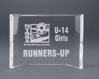 Self-standing acrylic awards, no bases needed. 1-1/4” thick with flat surface. Price includes laser engraving.