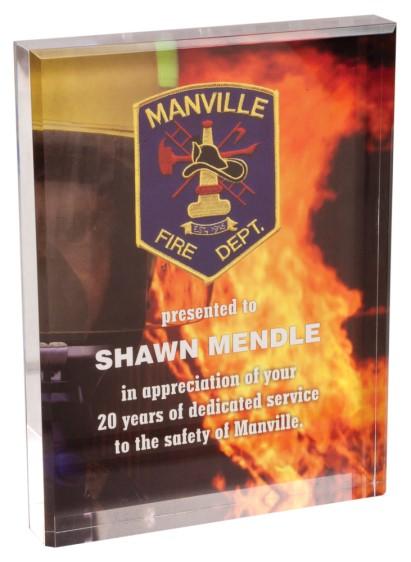 PREMIER ACRYLICS Price includes laser engraving. Available in Clear or Reflective Blue. Self-Standing!
