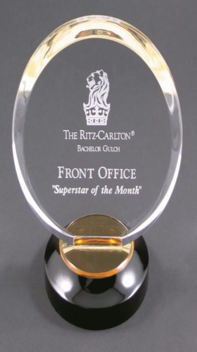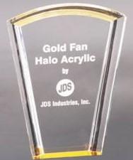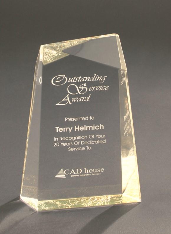 GOLD ACRYLIC AWARDS All Reflection Acrylic Awards are 3/4” thick and include the black acrylic base with gold mirror as shown. Add 7/8” to acrylic size for complete height with base. Price includes laser engraving.