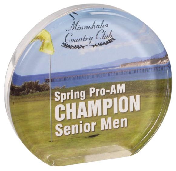 Halo Acrylic Awards 3/4” thick clear acrylic circle with attractive bevel that creates a “Halo” look.