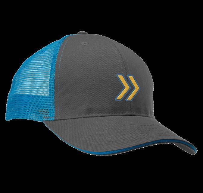 • Constructed 5-panel cap • Seamed front panel with full buckram • 6 embroidered eyelets • Pro stitch on crown • Matching fabric undervisor