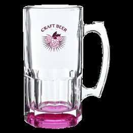 A0625AL 16.25 oz. Brussels Glass Beer Tankards Color Bottom Clear Bottom Add $1.46c Clear Red Purple Pink Green Blue Black QTY (c) 12 24 36 72 144 288 576 1008 2016+ 1 COLOR IMPRINT $9.32 $6.65 $5.99 $5.18 $4.88 $4.65 $4.40 $3.98 $2.99 2 COLOR IMPRINT $9.92 $7.25 $6.59 $5.78 $5.48 $5.25 $5.00 $4.58 $3.59 $11.07 $8.40 $7.74 $6.93 $6.63 $6.40 $6.15 $5.73 $4.74 A0384AL 9.75