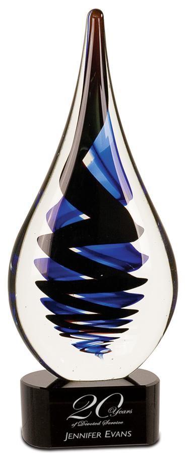 Premier Crystal and Glass Art is handmade. Each piece may vary in coloration and size. It is mounted on a base and is individually packaged in a lined gift box. Price includes an engraved plate.