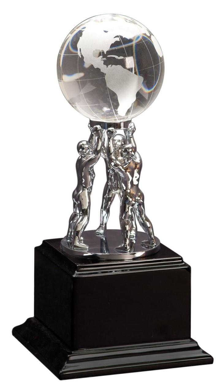 Executive Awards are stunning designs perfect for recognizing teamwork. These are high quality crystal & metal globes, mounted on black piano finish bases. Each comes in a blue gift box. Price includes an engraved plate.