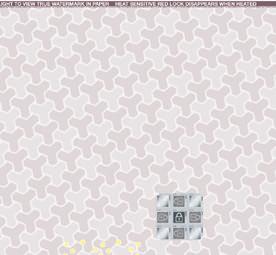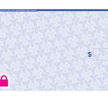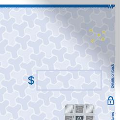 Multi-dimensional foil seal fused to check stock;cannot be reproduced by copiers or scanners.