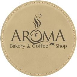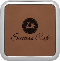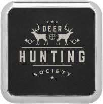 Set includes four 3/8” x 4” x 4” Ceramic Coasters. Includes laser engraving on four coasters. Each coaster has rubber pad covering entire bottom. Box is also Bamboo. Two opposite sides have U-shaped cut out. Box has four felt pads on bottom. (One on each corner). Coasters are glazed white then painted. Microwave and dishwasher safe.