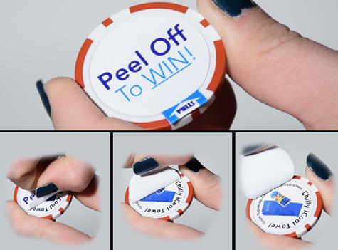 Drink tokens-with two $500 sponsors = $1,000. The chips cost $1.49 so with 100 golfers that’s $149. That will leave you $850 for drinks. When the beverage cart comes by, they will put a mark on the chip to show you received your beverage, leaving the advertising with the golfer or include a peel off tab and use for prizes, giveaways or drawings.