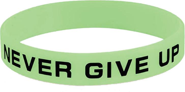 Glow in the dark silicone bracelet that is durable and resistant to wear and tear.
