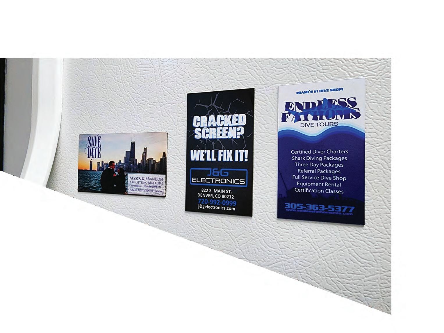Magnet – Our magnetc material is made of a mate finish vinyl with a magnetc backing with a satn coated finish. Standard thicknesses of .020” and .030”, can be used on any metal surface, and are proudly manufactured in the USA. We also offer a high gloss clear laminate suitable for indoor use and UV Coatngs suitable for indoor or outdoor use (a special quote will be required). Other thickness are available for special orders. These will require a special quote and may necessitate a longer turn tme.