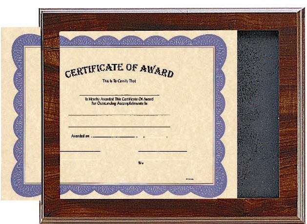 Holds 8-1/2” x 11” Certificate. Plaque size: 10-1/2” x 13”