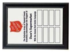 All plaque prices include one laser engraved Header Plate and one laser engraved Perpetual Plate. Engraving of additional Perpetual Plates are $6(V). Repeat setup fee: $10(V).