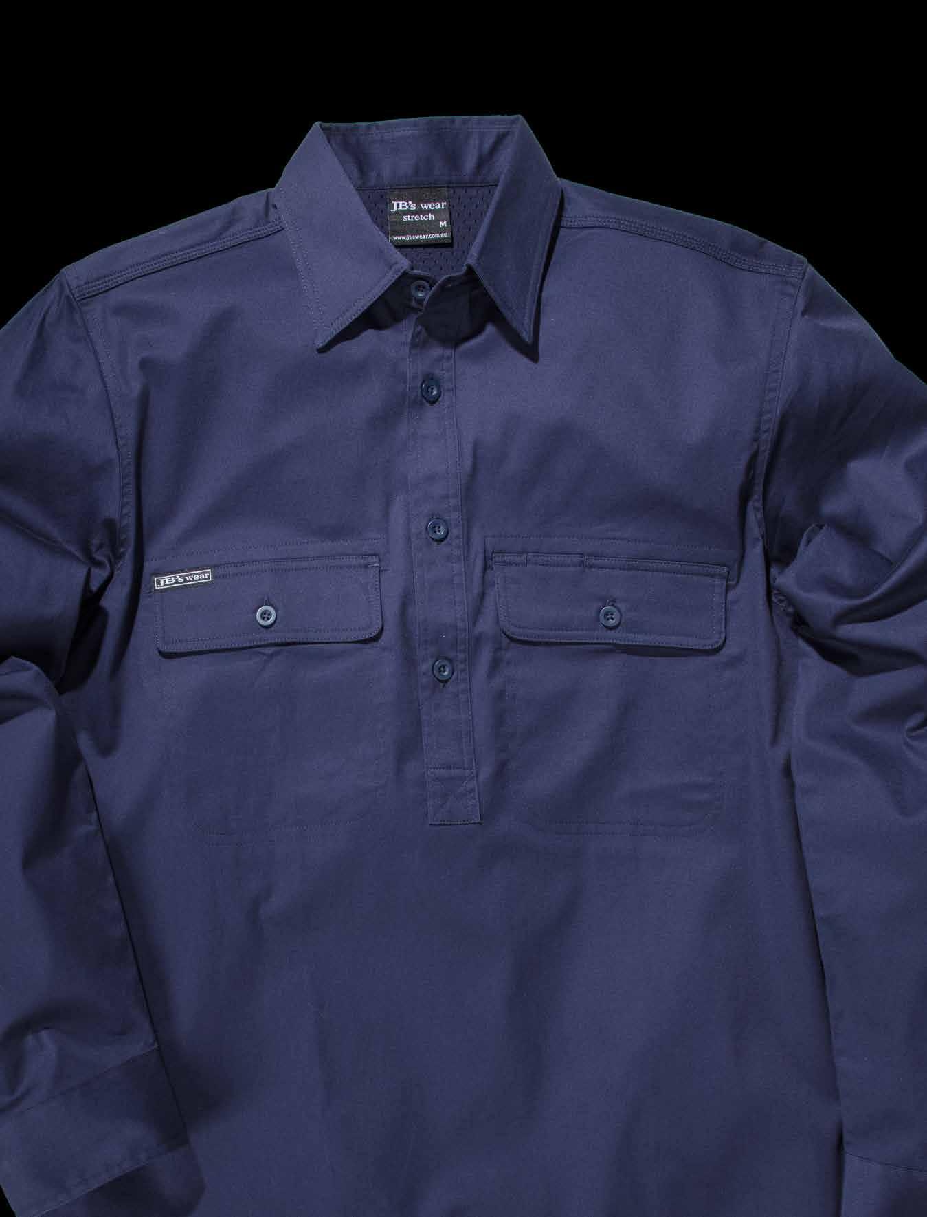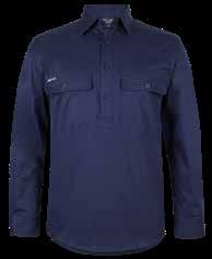 Reinforced chest pocket with pen insert 12cm drop tail with side splits Easy care, quick drying fabric