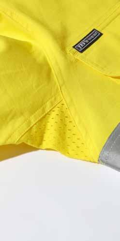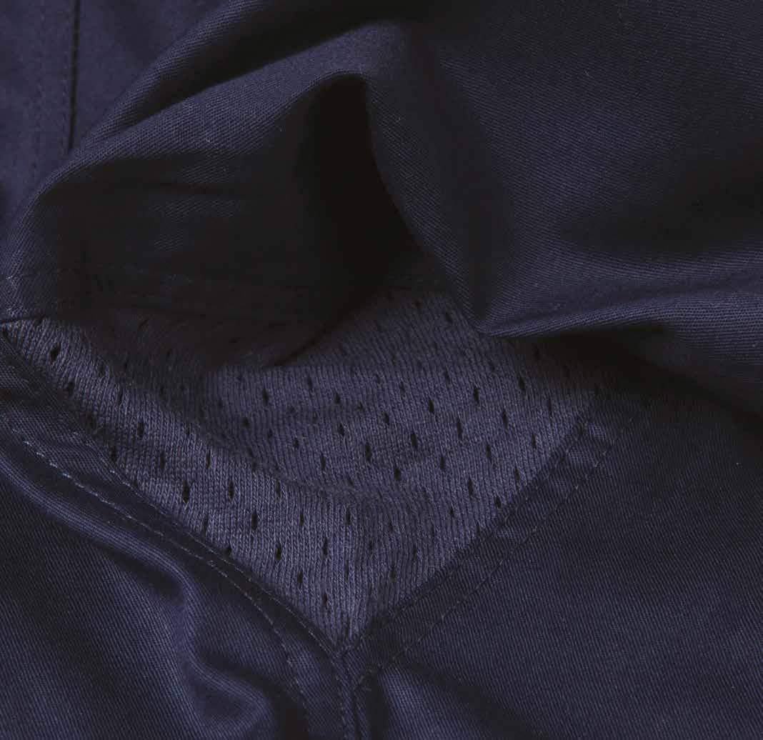 Mesh fabric is placed strategically around the garment to allow body heat to escape while you work