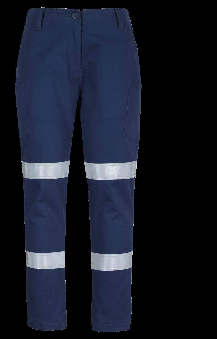 Reflective tape at knee and back pockets for visibility reflective tape complies with AS/NZS 1906.4:2023