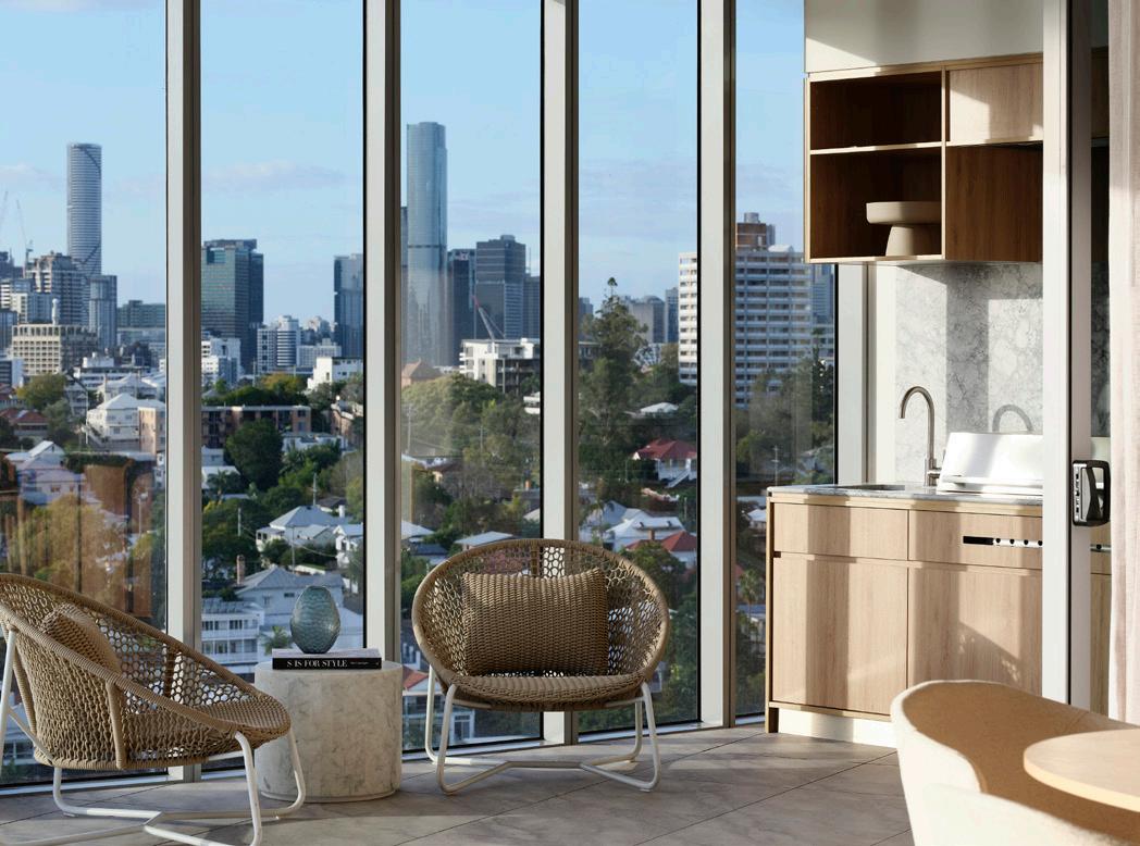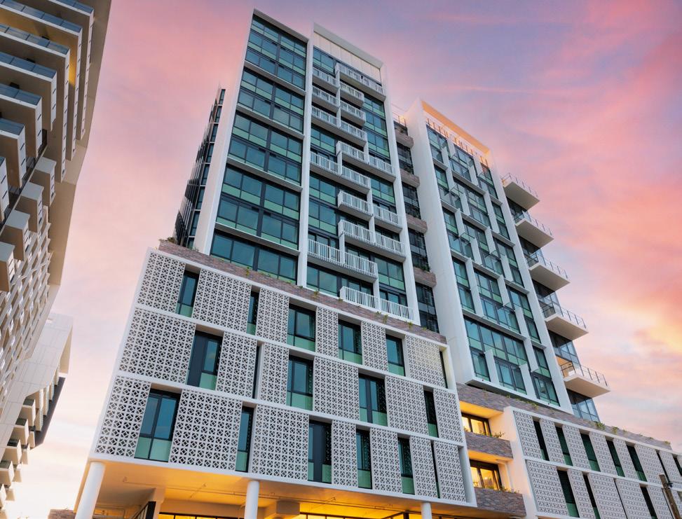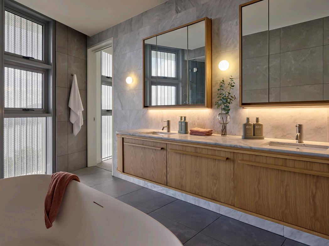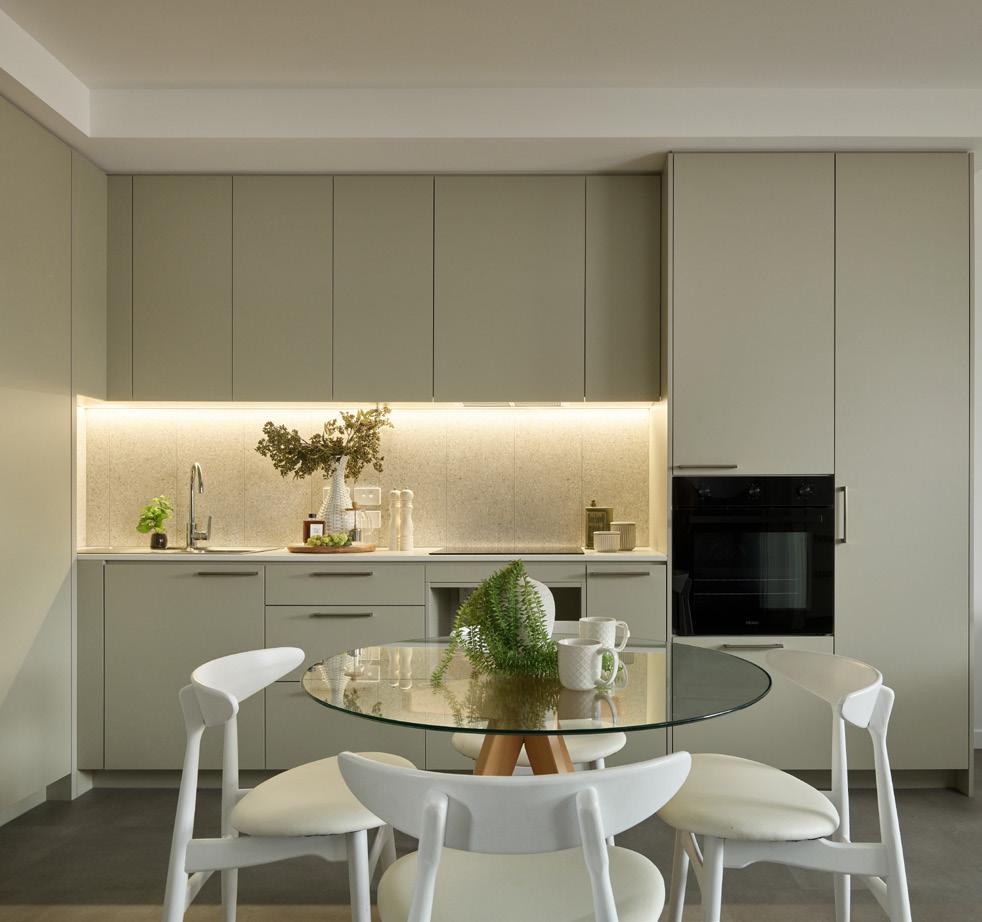 A total of 144 tonnes of joinery was supplied and installed across 153 rooms, including wardrobes, desks, bedheads and mirrored cabinets, all designed and manufactured to support daily living requirements while maintaining a highquality finish.