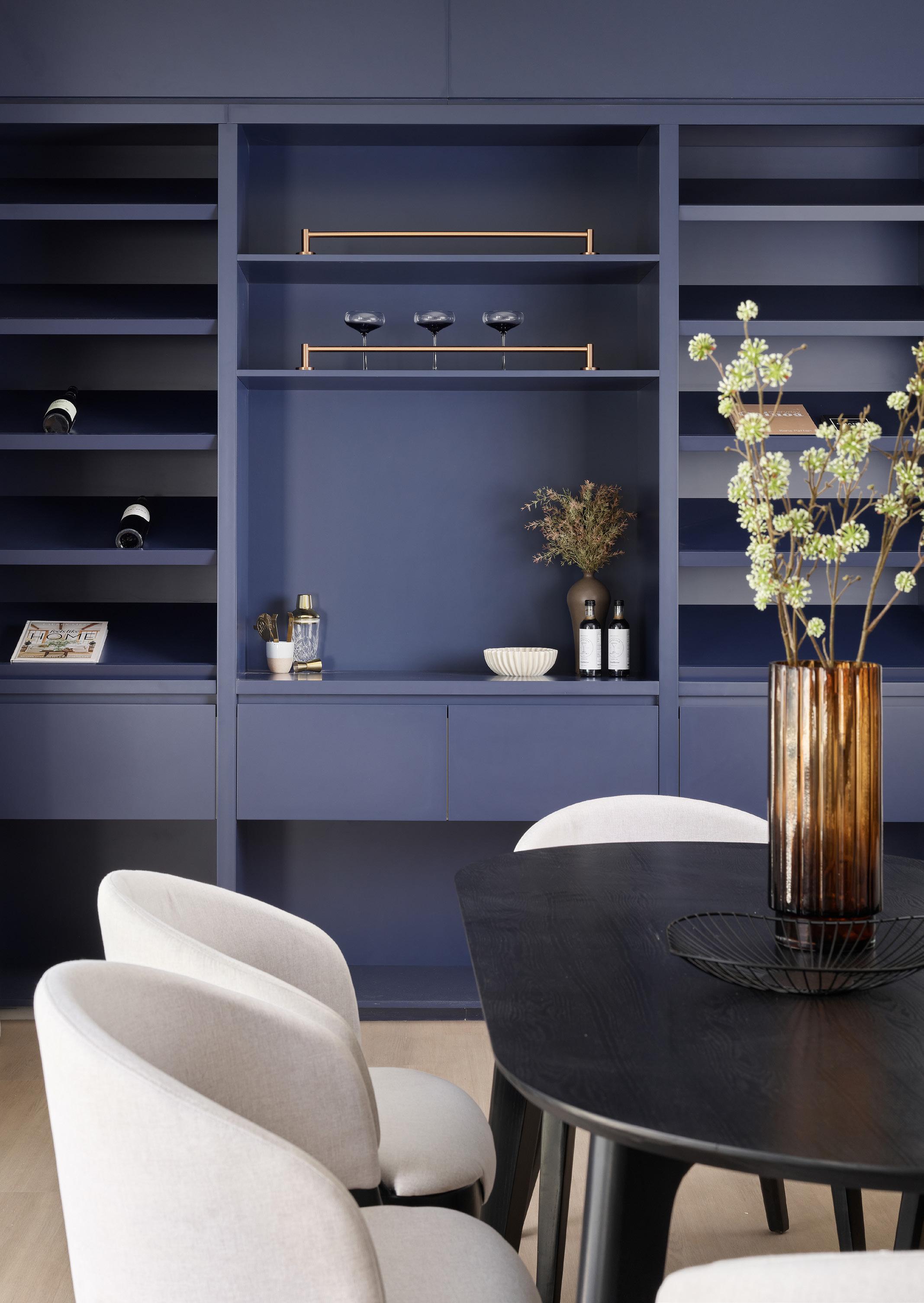 We delivered 15 bespoke joinery packages across high-end Brisbane homes, with this residence for Brishome Builders a true standout. Featuring custom, high-end joinery in a deep navy palette, it is elegantly complemented by premium gold hardware.