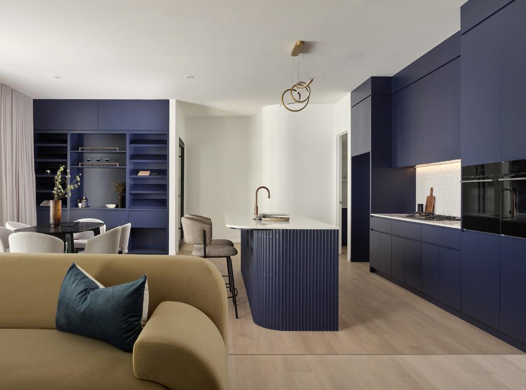 Bespoke joinery for 34 luxury residential apartments, delivered across kitchens, bathrooms, walk-in wardrobes and entertainment spaces in four distinct colour schemes.