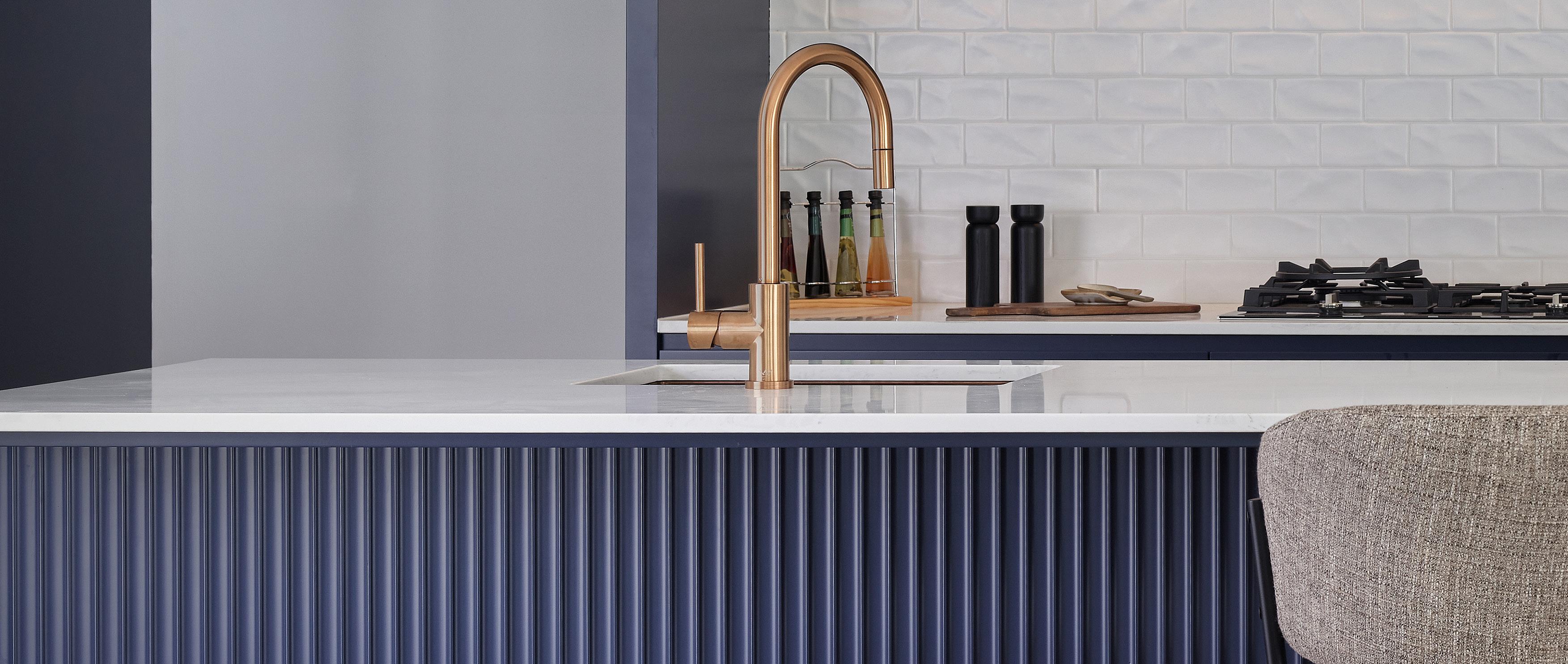 Featuring custom, high-end joinery in a deep navy palette, every space was considered, from kitchen, mudroom and pantry through to the dining, alfresco BBQ, laundry and living areas, as well as the master ensuite, upper powder room, bathroom vanities, walk-in linen and study.
