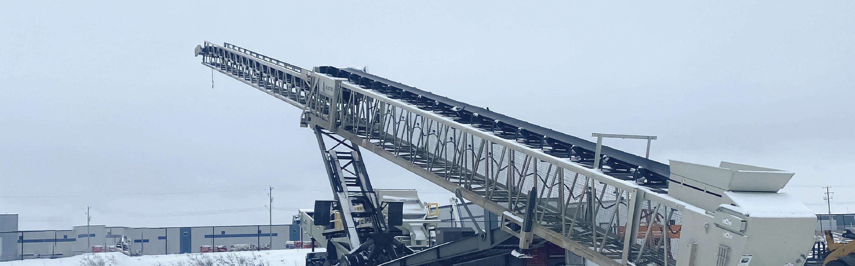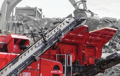 20 ton hopper w/ hydraulic push feeder, 3 folding discharge conveyors. Cat C4 engine. Accepts up to 32” rock. See page 62 for more info.