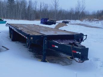 2020 Doepker 53’ Tridem drop deck trailer. 8’6” wide, ramps Inc. NEW 22.5” tires, aluminum wheels & tool box. 4 pull out wide load lights, Low Km’s.