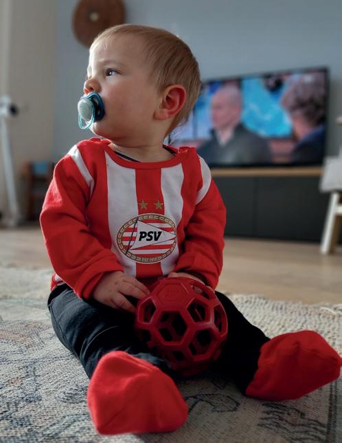 "Noah en Milan hadden eigenlijk geen keus. Ze zijn direct na hun geboorte lid gemaakt van de supportersclub, slapen onder PSV-dekbedden en lopen in PSV-tenues rond. Want zoals ik altijd zeg: ‘PSV, dat zit gewoon in je DNA’."