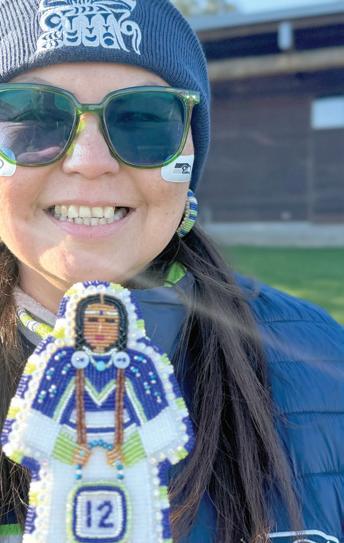 Seattle Seahawks superfan Junior Santos helped lead the Suquamish Tribe’s playoff game rallies by raising the 12th Man Flag at the House of Awakened Culure. See more of our road to the Superbowl coverage starting on page 10. (Photo by Jon Anderson)