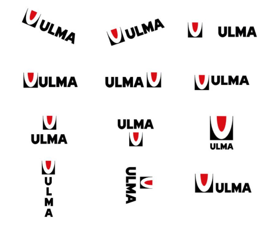 Colour alterations. Alterations or combinations other than the original brand colours are not allowed. Inappropriate combinations. No elements may be placed next to the ULMA logo. This includes own brands or business names. Incorrect logo positioning. None of the following positions are allowed.