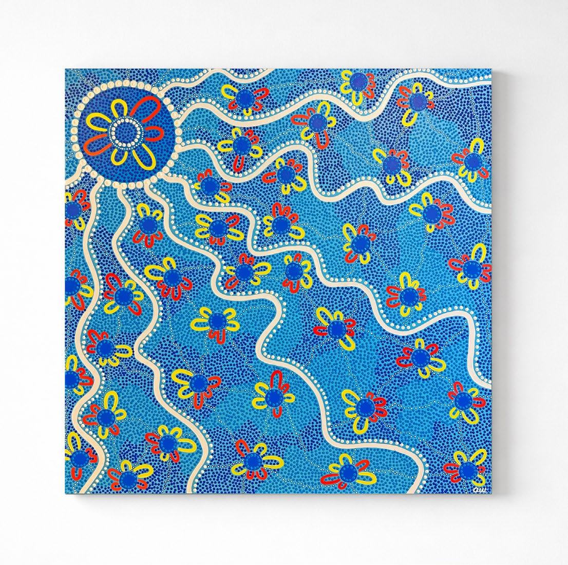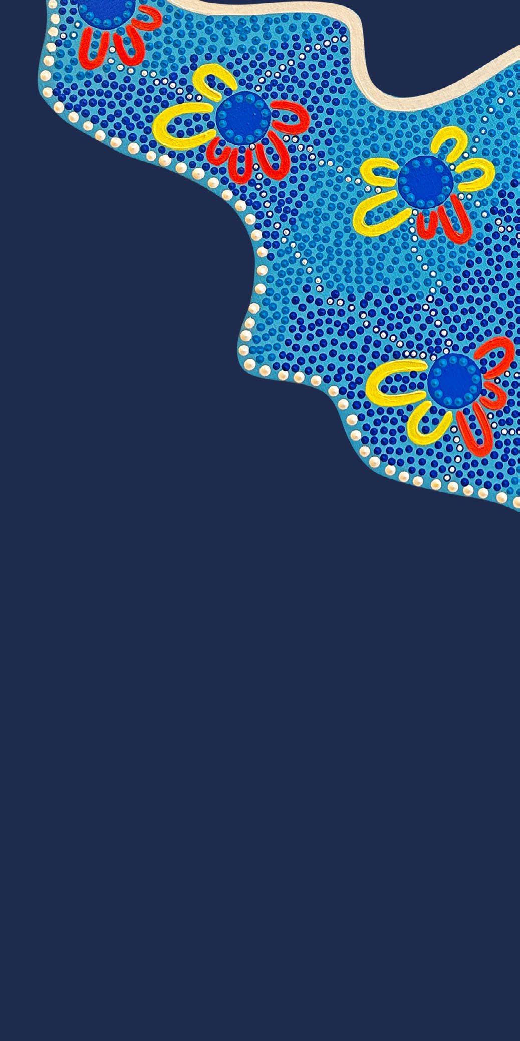 Milly’s art blends modern Aboriginal dot painting techniques with digital design, allowing her to create both original canvas works and designs for sporting teams, workplaces, and community projects. A year ago, she started her own business, Milly Leigh Art, which has helped her grow not only as an artist but also as a young Aboriginal woman proud of her heritage and place in the community.