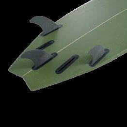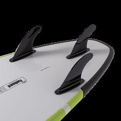 The Pro-9 comes in a 4+1 fin configuration enabling you to be creative in your setup as a quad or thruster. NSP positioned the Surf 10 fin box slightly further back, to enable a 2+1 setup. The Pro-9 comes with FTU boxes for its sidefins, making it com- patible with Futures® Fins (fins not included).