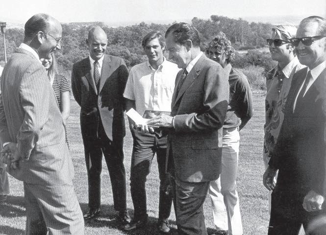 (left) The Nixons at the “Western White House.” Photo provided by the Richard Nixon Presidential Library and Museum; (facing) President Nixon receiving an honorary membership from the San Onofre Sur ng Club on Aug. 25, 1970. Photo provided by Bob Mardian Jr.